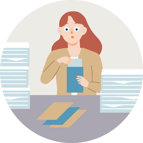 日々の業務の忙しさや、複雑な作業に取り組むシーンを中心に描いたイラストです。SmartHRを導入することで解決したい、課題や困っていることを表現する際に利用してください。