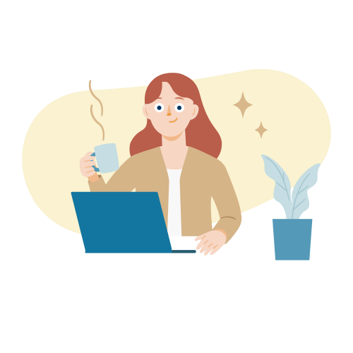 導入後_右手にコーヒーカップ(労務ハナコ)
