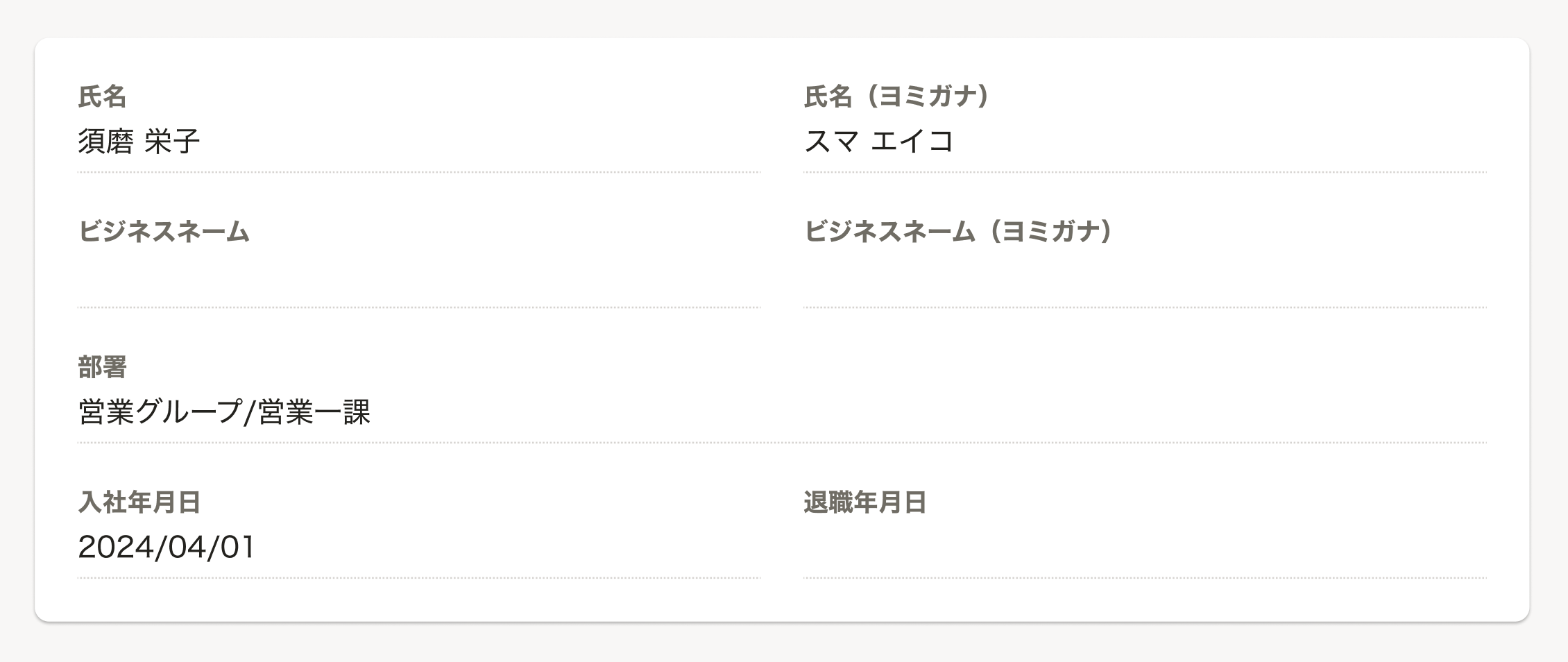 なお、maxColumns propsに 2 以上の数字を指定している場合でも、あらかじめ長い文字列が入る想定があるDefinitionListItemに fullWidth propsを指定することで、その項目のみ一列で表示できます。