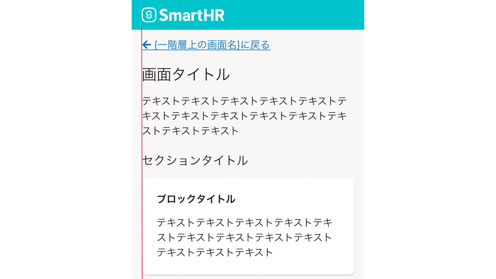 「一階層上に移動するリンクである」ことをユーザーに示し、認知を促すため、リンクテキストとメインコンテンツの左端を揃えます。