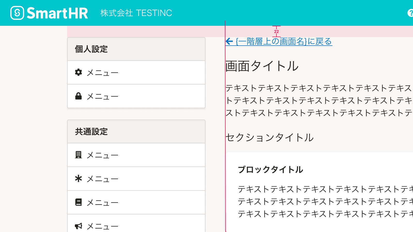 基本機能の共通設定のように、メインコンテンツにサイドナビゲーションが隣接する場合は、indentを無効にします。