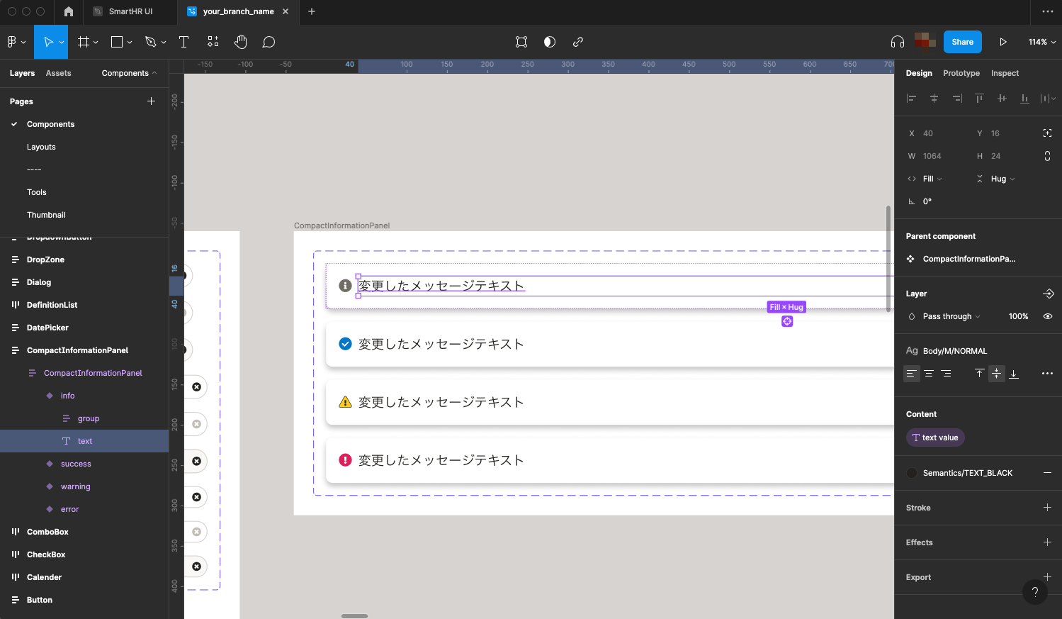 - Text StyleやColor Styleの変更など、必然的に影響範囲が大きくなる場合はその旨をブランチの説明に明記してください。