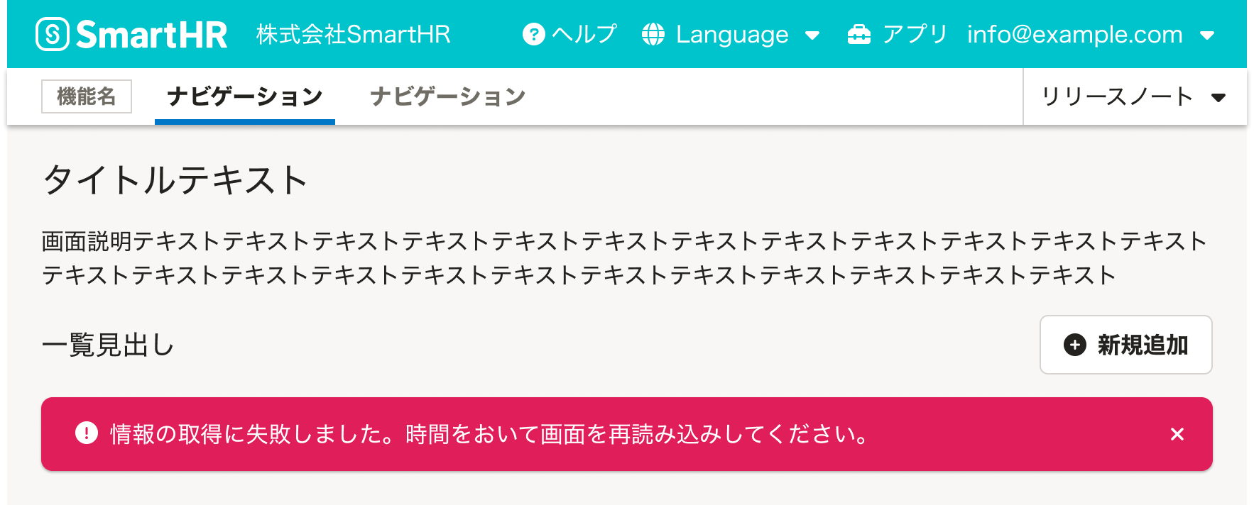 操作後に画面全体の切り替えが発生する場合など、ユーザーが直前に操作していたButtonの近くに表示することが難しい場合は、成功時にはsuccess状態、失敗時にはerror状態でNotificationBar[bold]を表示します。