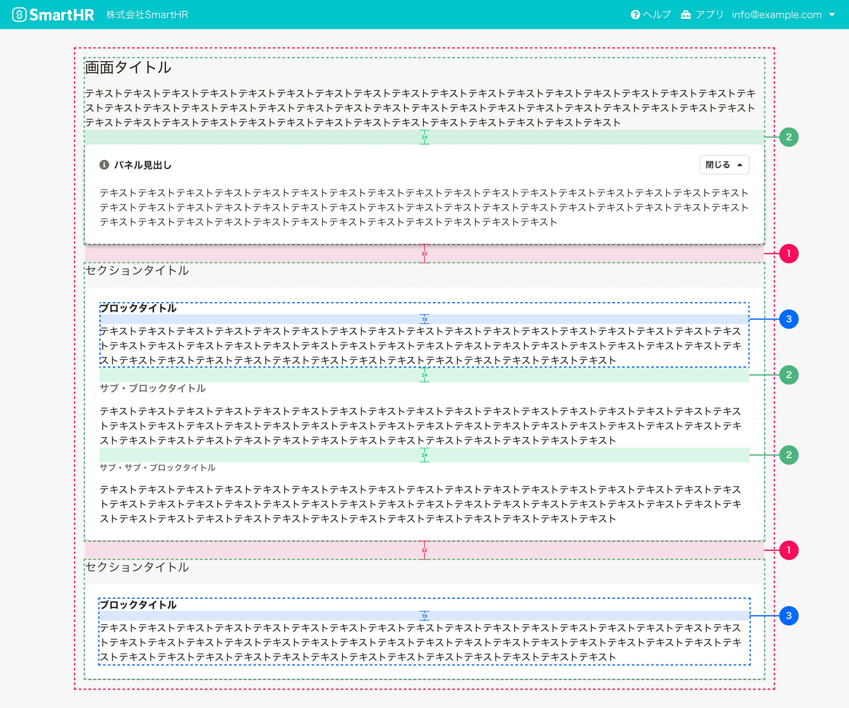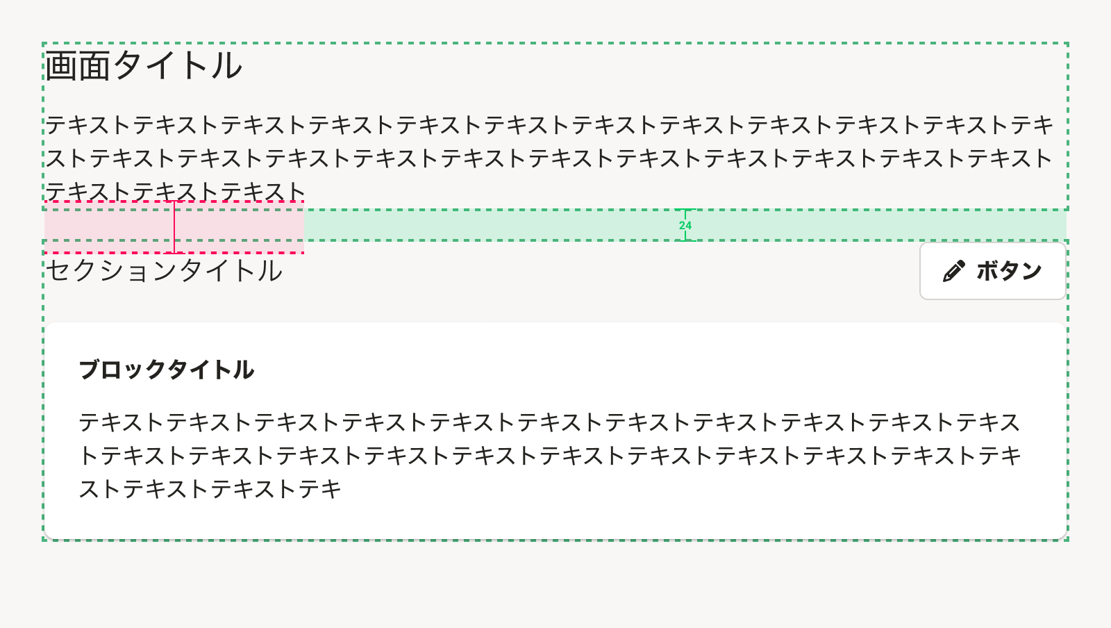 - 同じ意味階層となる要素同士は、ぞれぞれ同じ大きさのマージンを適用する。