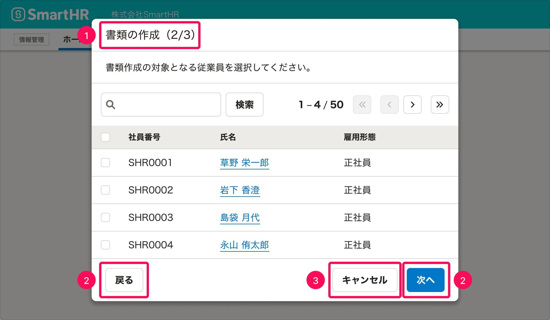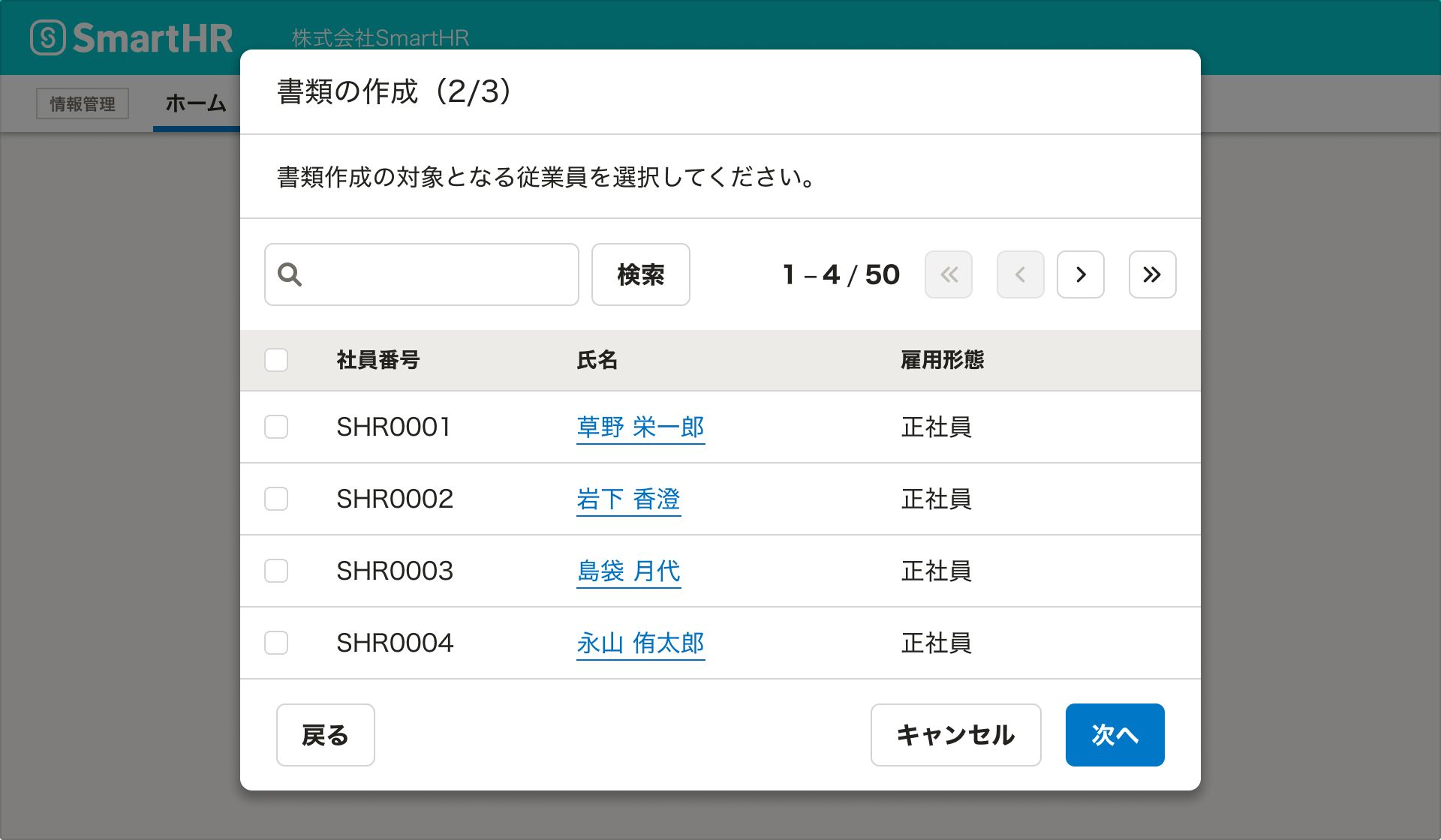 ウィザードは、基本的にはモーダルダイアログを使って提供します。SmartHRでは、専用のコンポーネントとしてStepFormDialogを用意しています。